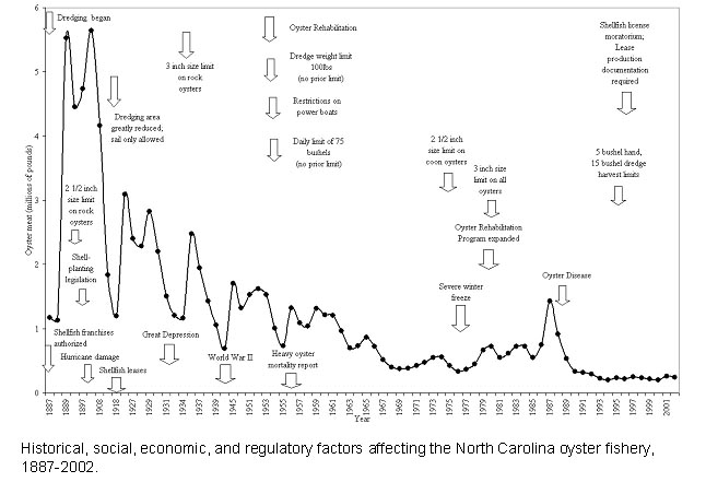· Commercial harvest of oysters has declined 90% from historic levels (See graph below)